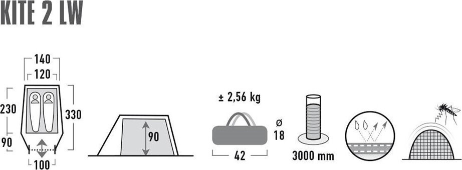 Kite 2 od firmy High Peak to solidny 2-osobowy namiot z tropikiem, który pozwoli Ci na komfortowy wypoczynek w plenerze.