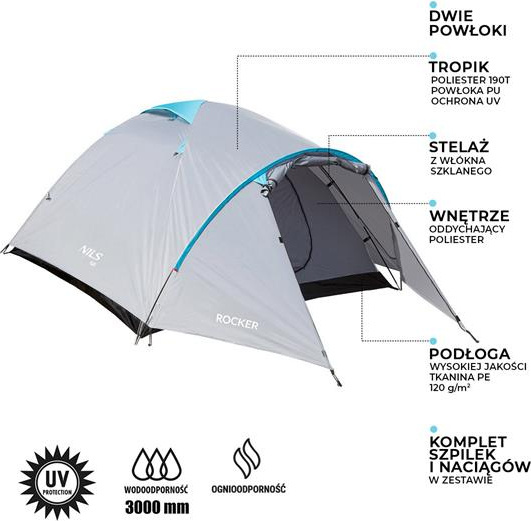Namiot turystyczny Nils Camp NC6013 Rocker to idealne rozwiązanie dla wszystkich tych, którzy uwielbiają kilkudniowy górski survival lub weekendowy wypad nad jezioro.