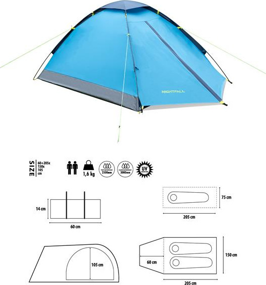 Namiot kempingowy turystyczny nightfall Nils camp nc6033 2 osobowy niebieski 265x150x105cm