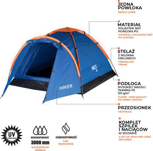Namiot turystyczny Nils Camp NC6010 Hiker to świetne rozwiązanie dla miłośników outdoorowych wypadów, łączących wędrówkę ze spaniem pod gołym niebem.