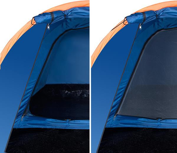 Hiker posiada główne, otwierane wejście w przedsionku, a sama sypialnia jest wyposażona w moskitierę oraz otwór wentylacyjny pod sufitem.