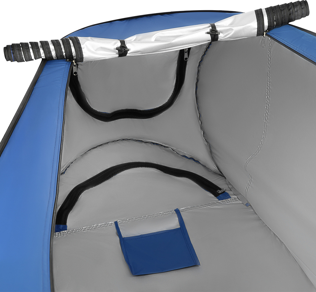 Przebieralnia została wykonana z wodoodpornego materiału, natomiast wewnątrz NC1706 zastosowano srebrną warstwę izolacyjną, która powoduje, że pomieszczenie się nie nagrzewa.