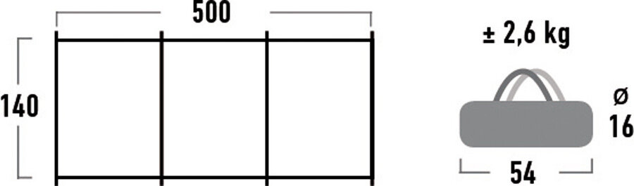 Dane techniczne:· stelaż: stanowe rurki· parawan: 100% poliester· wymiary po rozłożeniu: 500 x 140 cm· wymiary po złożeniu: 54 x 10,5 cm