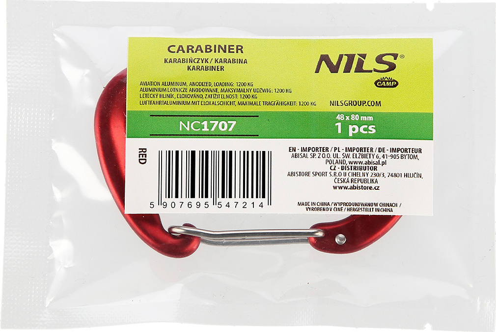 Karabińczyk NC1707 marki NILS CAMP wykonany z aluminium anodowanego o bardzo dużej wytrzymałości.