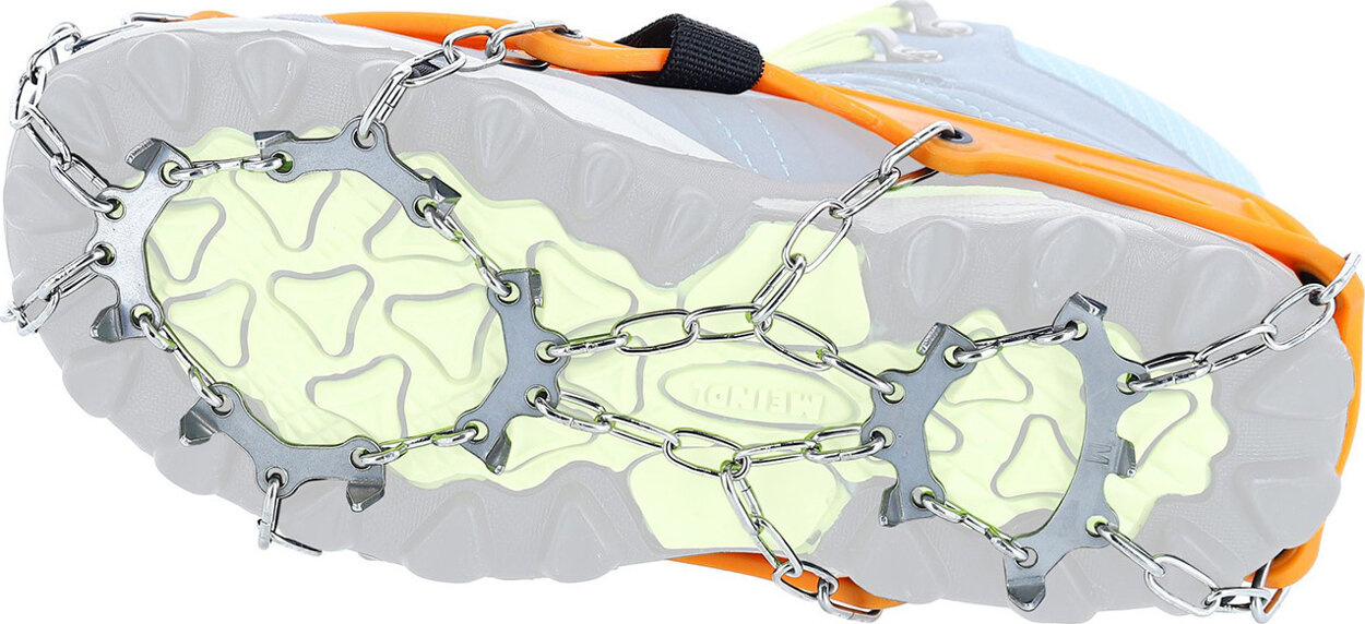 Raczki na buty trekkingowe Viking zadbają o bezpieczeństwo Twojego dziecka podczas wędrówek po łatwych szlakach górskich oraz śliskich nawierzchniach tras. Wyprofilowane kolce ze stali nierdzewnej o grubości 6 milimetrów są gwarancją odpowiedniej przyczepności na oblodzonych powierzchniach czy ubitym śniegu. Gumowa część charakteryzująca się zwiększoną elastycznością oraz łańcuszki ze stali nierdzewnej zapewnią odpowiednie dopasowanie do większości modeli obuwia. Zapięcie regulowane rzepem przyczynia się do lepszego przylegania i bezpieczeństwa podczas użytkowania.