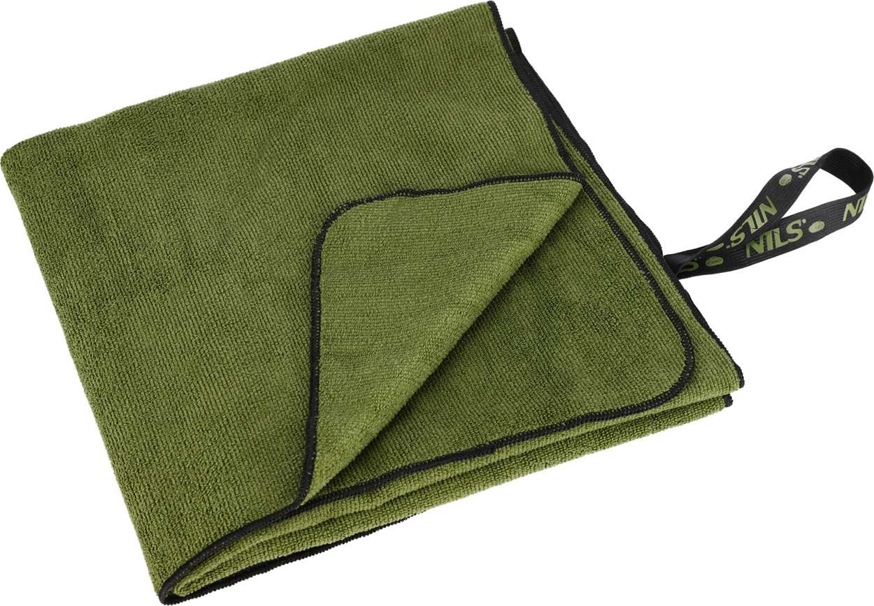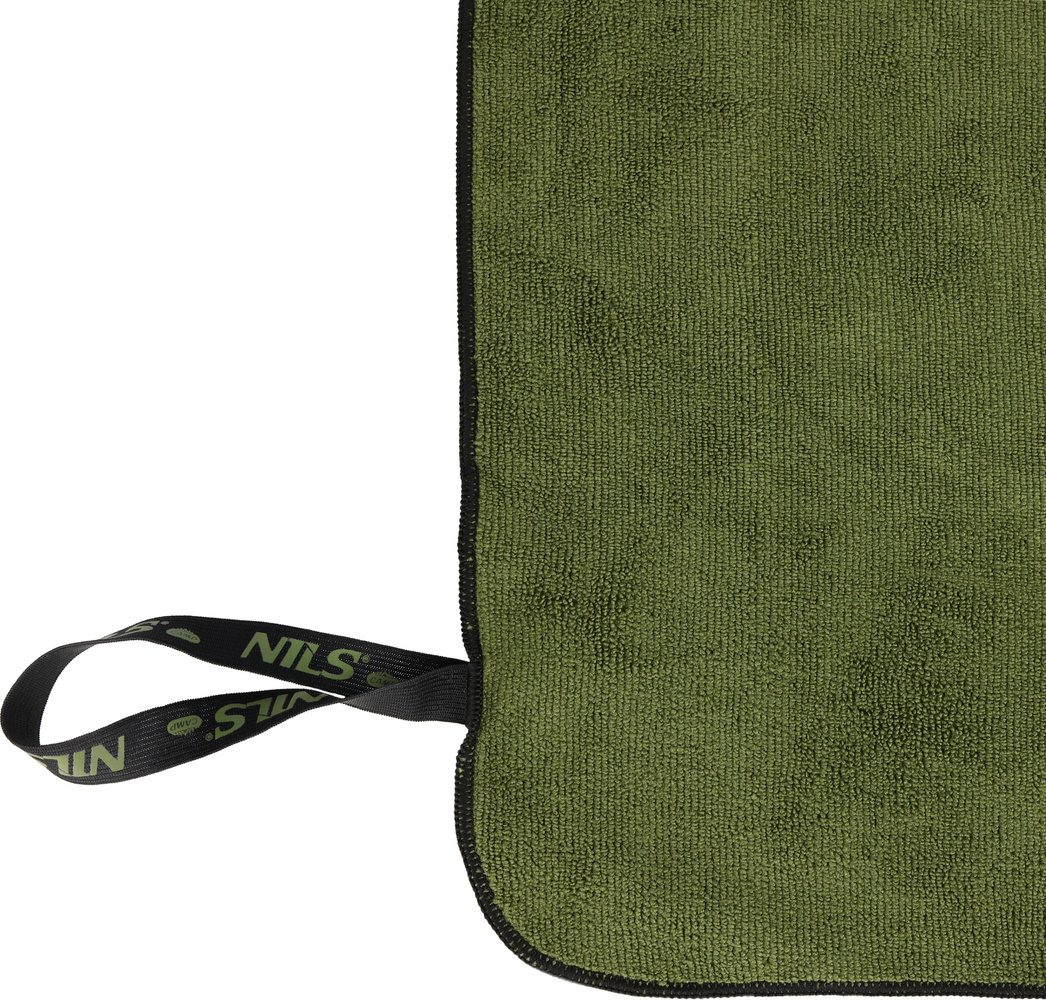 Ręcznik NILS CAMP NCR15 w kolorze wojskowej zieleni to doskonałe rozwiązanie dla osób ceniących funkcjonalność, kompaktowe wymiary oraz estetyczny, stonowany wygląd.