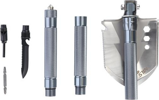 Zawiera szereg różnych narzędzi: od piły, szpadla, motyki, noża, po krzesiwo, nóż do lin, zbijak do szyb, bity, płaski klucz, a nawet gwizdek - wszystko, co niezbędne w trudnych warunkach terenowych.