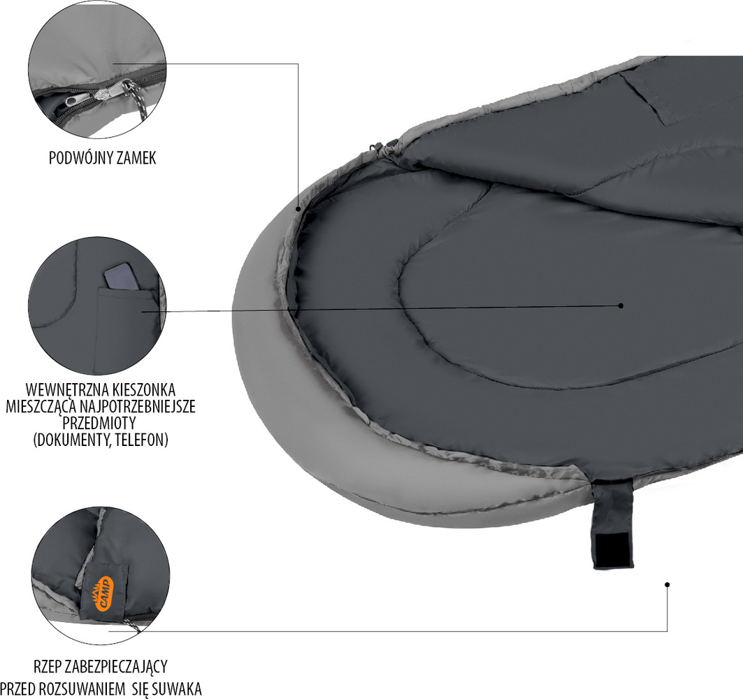 Skutkuje to spokojnym, ciepłym snem nawet przy temperaturze bliskiej 0 stopni celsjusza Dla jeszcze większego komfortu użytkowania śpiwór posiada specjalne przeszycia zapobiegające przemieszczaniu się wypełnienia.