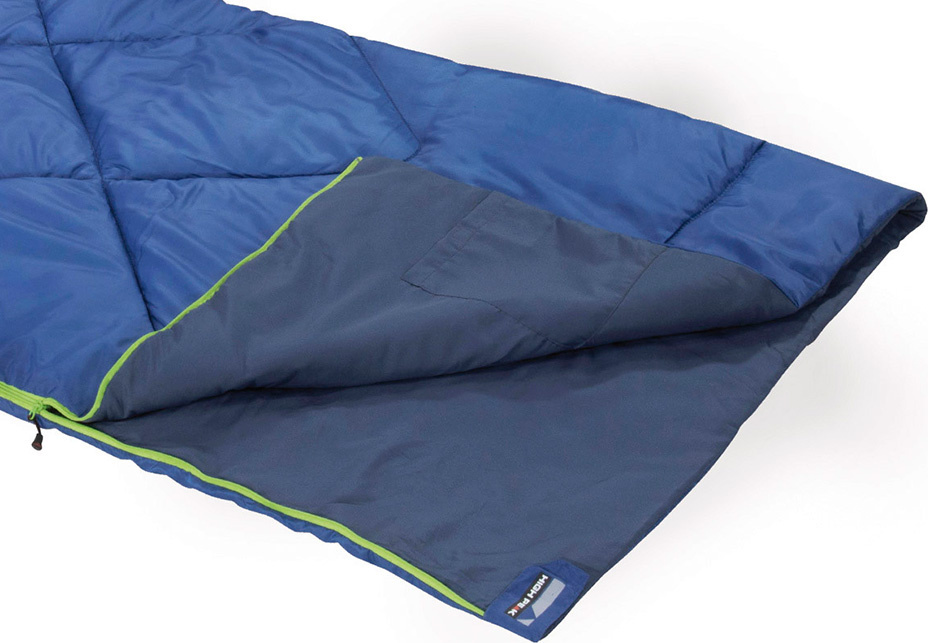 Wysokogatunkowy, lekki niebieski śpiwór High Peak z granatowym wnętrzem i zamkiem to doskonały wybór zarówno na obóz wędrowny, jak i weekendowy wypad na pole namiotowe czy domek.