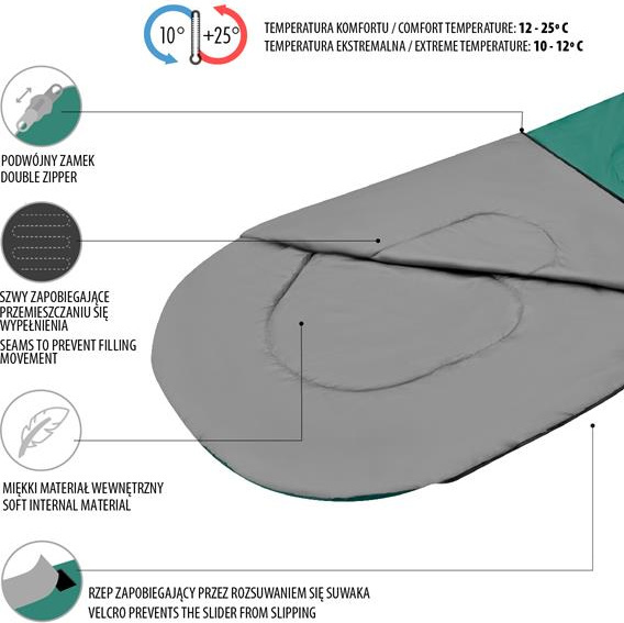 Śpiwór NC2105 M marki NILS CAMP to świetne rozwiązanie dla każdego, kto uwielbia wypoczynek oraz spędzanie wolnego czasu podczas campingu lub pod namiotem.