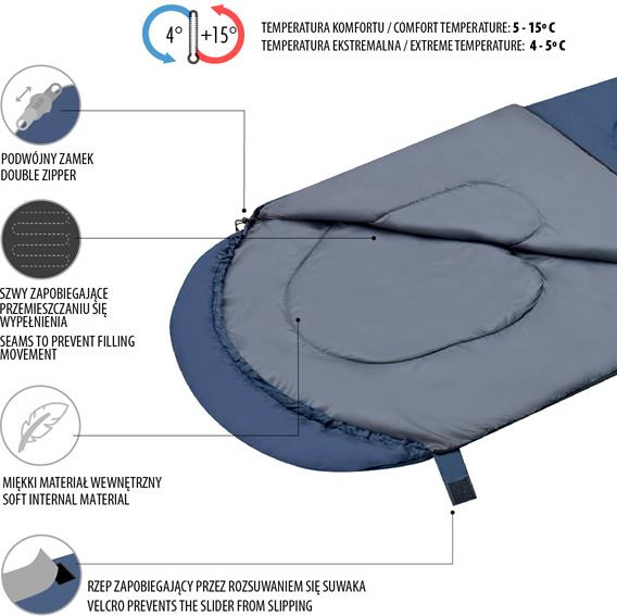 Śpiwór NC2107 L marki NILS CAMP to świetne rozwiązanie dla każdego, kto uwielbia wypoczynek oraz spędzanie wolnego czasu podczas campingu lub pod namiotem.