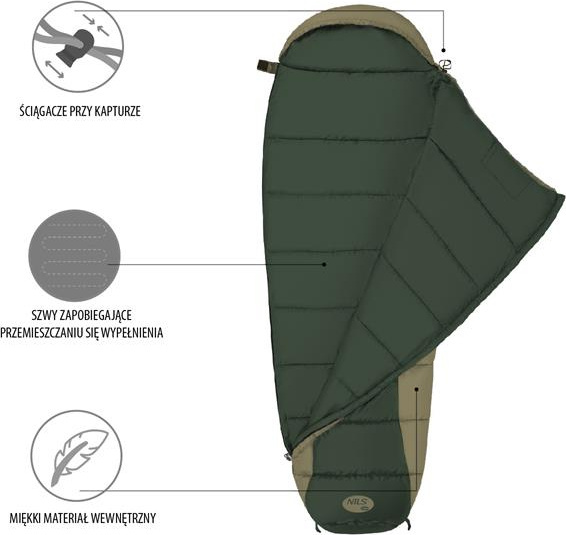 Śpiwór turystyczny ciepły mumia Nils Camp NC2012 zielony 80x190cm