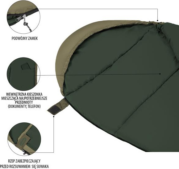 Dla jeszcze większego komfortu użytkowania śpiwór posiada specjalne przeszycia zapobiegające przemieszczaniu się wypełnienia.