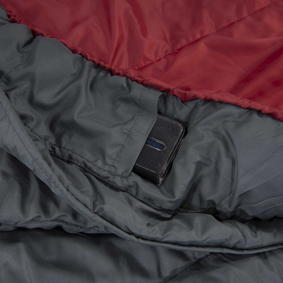 Praktyczny śpiwór mumia High Peak w bordowej wersji z szarym wnętrzem to nieodłączny element ekwipunku każdego turysty odkrywającego piękno otaczającego świata wiosną, latem czy jesienią.