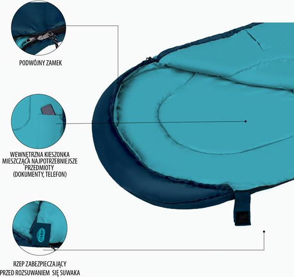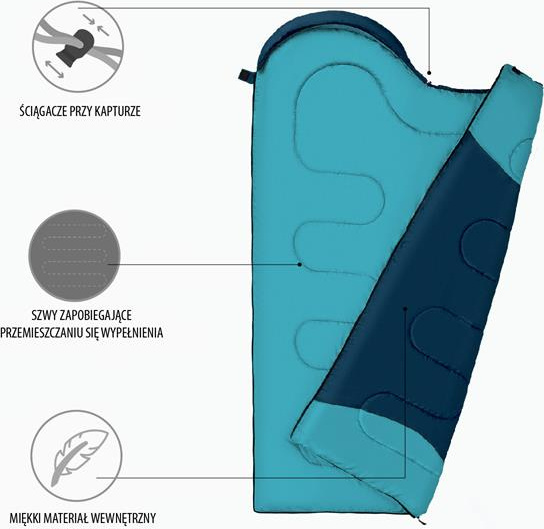 Skutkuje to spokojnym, ciepłym snem nawet przy temperaturze bliskiej 0 stopni celsjusza Dla jeszcze większego komfortu użytkowania śpiwór posiada specjalne przeszycia zapobiegające przemieszczaniu się wypełnienia.