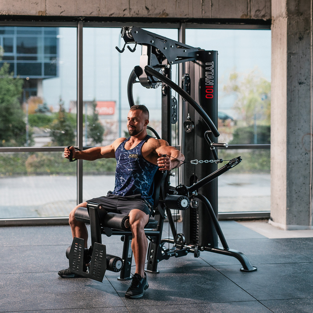 Dzięki temu TYTAN 100 sprawdzi się jako atlas wielofunkcyjny do komercyjnego klubu fitness, który zastępuje kilka pojedynczych maszyn i pozwala realizować kompletny plan treningowy bez zmiany stanowiska.