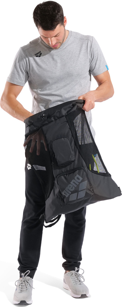 Składana i wyjątkowo wytrzymała torba siatkowa od marki arena to idealne rozwiązanie do przenoszenia sprzętu treningowego lub innych rzeczy.