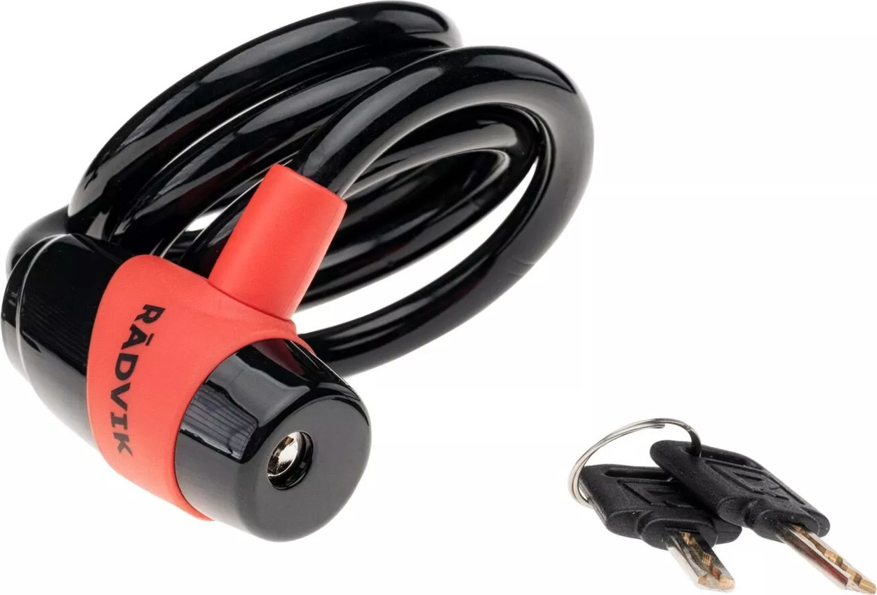 Zapięcie rowerowe federlocker marki radvik składa się z długiej, stalowej linki, które pozwala zabezpieczyć rower przed kradzieżą.