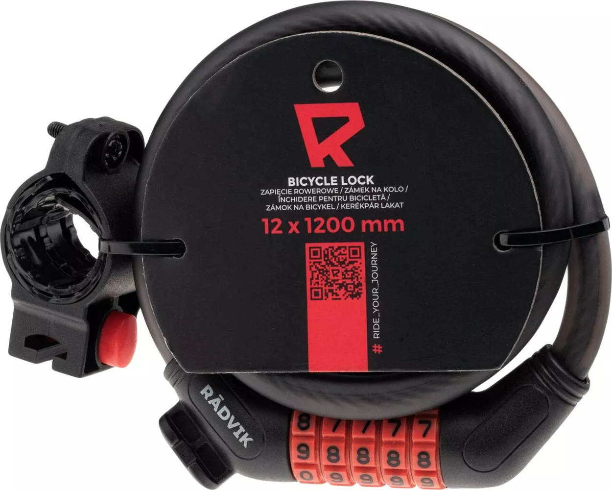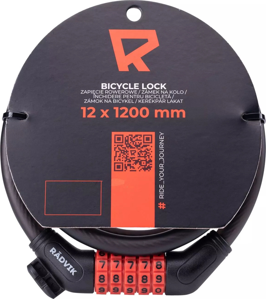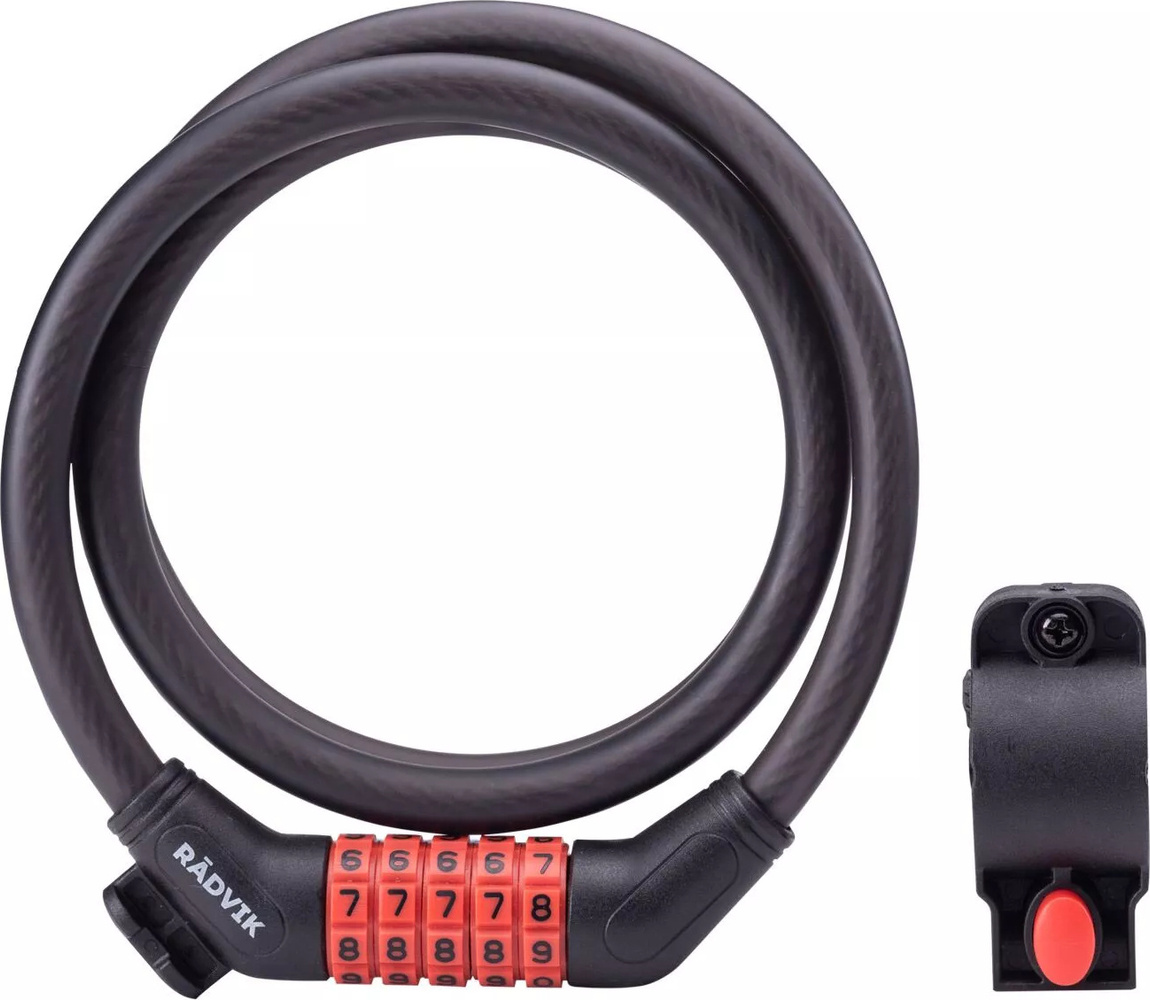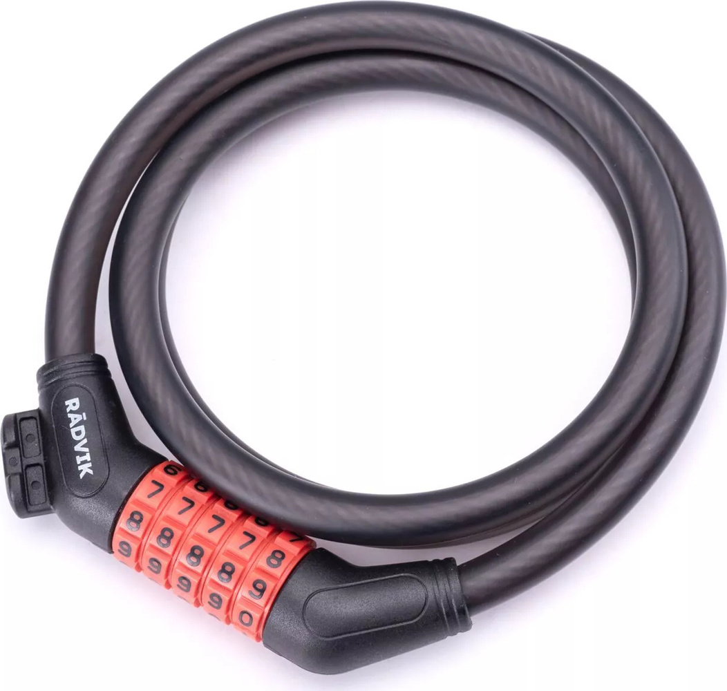 Zapięcie rowerowe federsifer marki radvik składa się z długiej, stalowej linki, które pozwala zabezpieczyć rower przed kradzieżą.