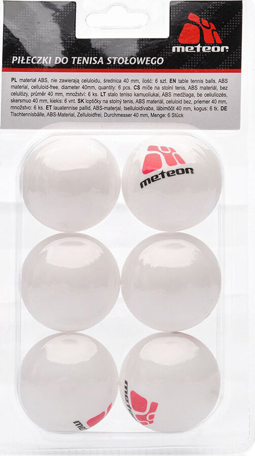 Komplet zawiera 6 sztuk białych piłeczek z logo Meteor.