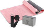 ( ilość produktów: 79 )Zestaw do jogi yogi HMS mata fitness pilates różowa TPE YM10 kostka KJ02 pasek SJ01